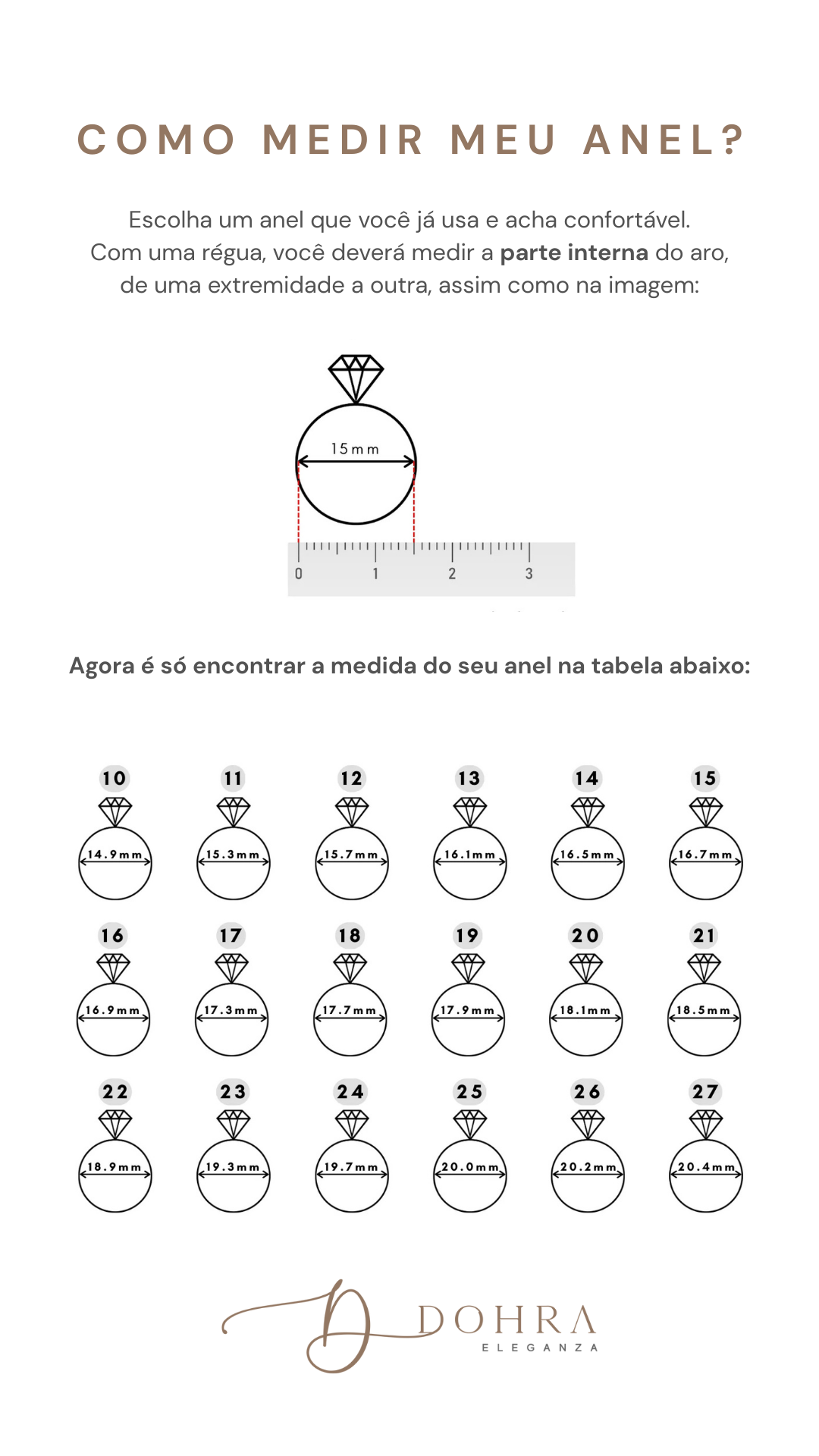 O anel é confeccionado em Prata 950 com banho de ouro 18k e acabamento polido, proporcionando um brilho caloroso e sofisticado.
